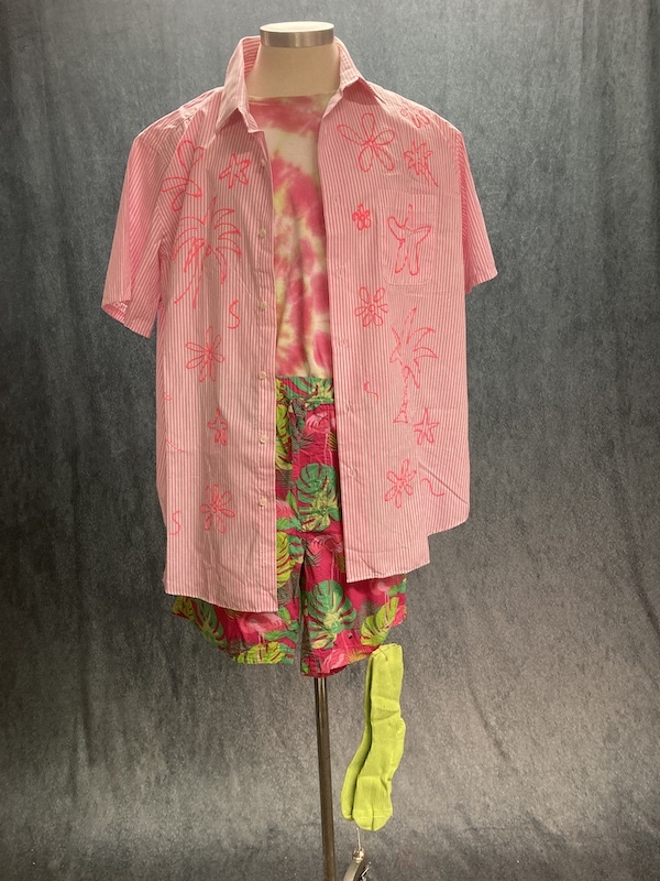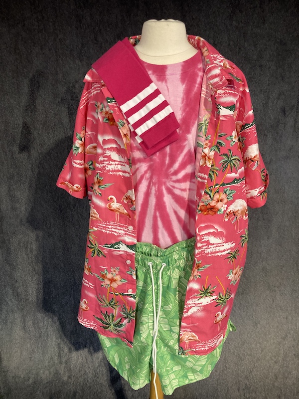 WE CURRENTLY HAVE TWO OPTIONS AVAILABLE. YOU WILL RECEIVE EITHER OF THE EXACT COSTUMES AS PICTURED DEPENDING ON YOUR PROVIDED MEASUREMENTS. Featured Set Sizes (lighter pink): Shirt 54, T-Shirt 49, Shorts 29-50. Other option sizes (darker pink): Shirt 44, T-Shirt 41, Shorts range from 26-29.