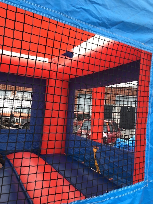 Piece 1 of 4 that can hook together if all are rented. Moonbounce hooks on to the end in big picture. This rental is for the moonbounce portion only. Includes one electric blower. May need heavy duty extension cord to reach your power source depending on where you place the moonbounce. Please contact us for a special rate if you wish to rent the whole set of four!